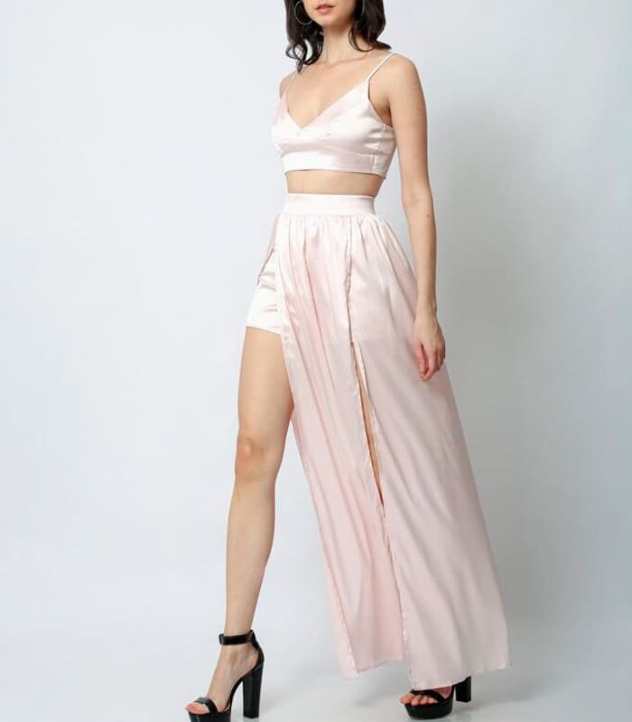 Falda larga abierta en los muslos | Conjunto elegante rosa o lila