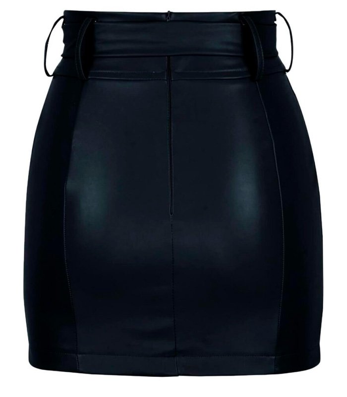 El cinturón de piel sintética no solo realza el diseño, sino que también permite ajustar la falda a tu medida para un calce perfecto. Disponible en colores versátiles, esta prenda se adapta tanto a looks de día como de noche.