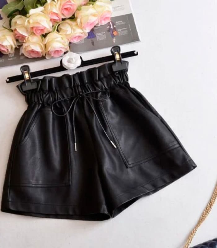 Shorts piel sintética mujer negros con cintura alta y pierna ancha. Brillo moderno, ajuste favorecedor y fácil de combinar día y noche.