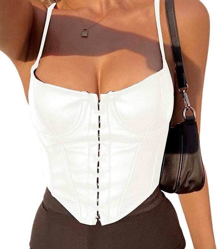 Top sexy corte bajo mujer | Corsé elegante de cuero sintético