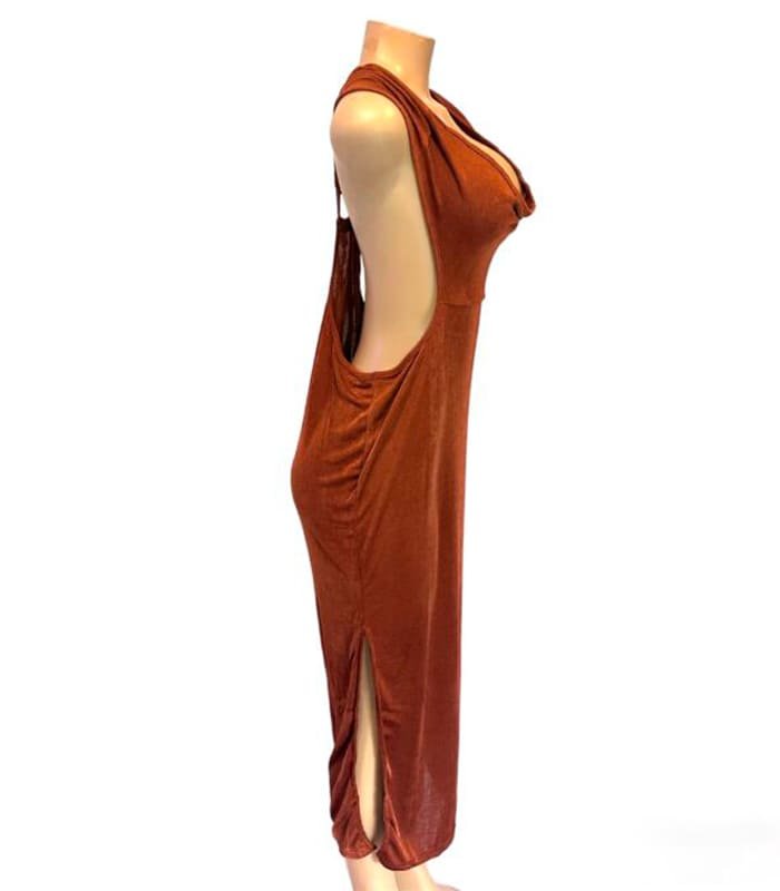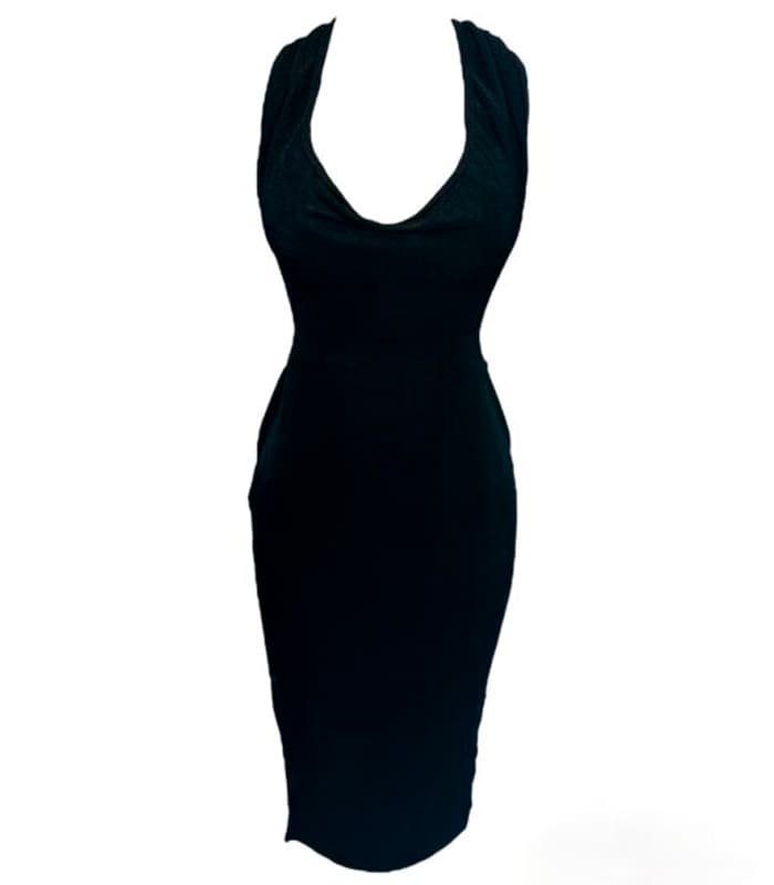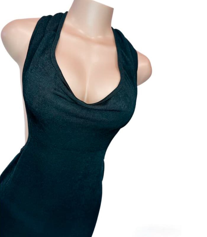 Diseñado para las mujeres seguras y atrevidas, este vestido sin mangas y sin espalda es la pieza ideal para destacar en cualquier ocasión. Su corte entallado resalta las curvas de manera seductora, creando una silueta elegante y sofisticada.